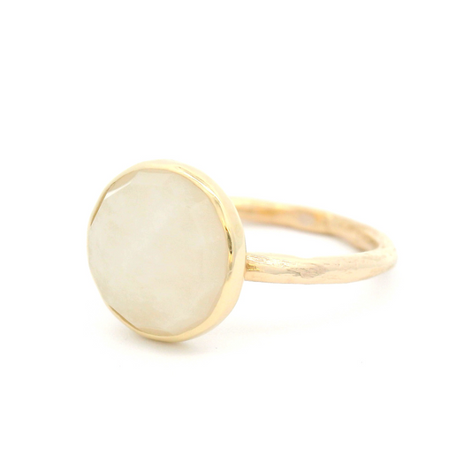 10k Yellow Bezel-Set Ring with a Ivory Rose-Cut Sapphire