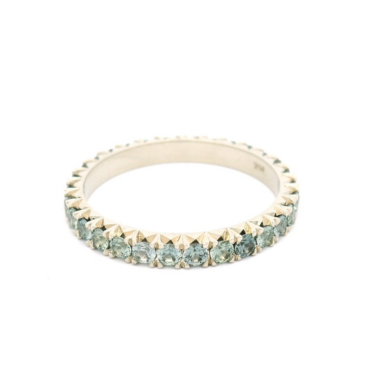 14k White Gold Eternity with 1.2cts Bead-Set Natural Round Greenish-Blue Sapphires