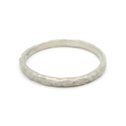 Hammered Band I - 14k White 2mm Wide Flat Hammered Wedding Band
