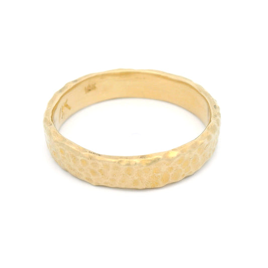 14K Yellow Gold 4mm Wide Hammered Domed Band
