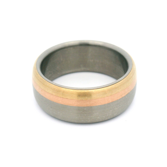Titanium with 10k Yellow and Rose Gold Accents 7.5mm Wide Band