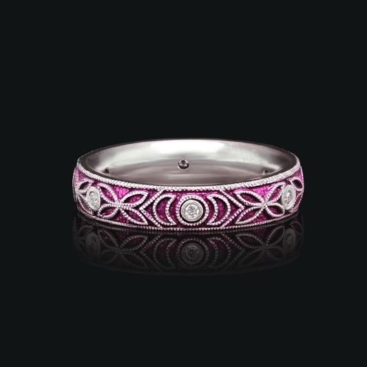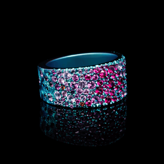 Borealis Bling - Pink Sapphire & Titanium Fine Engraved Band
