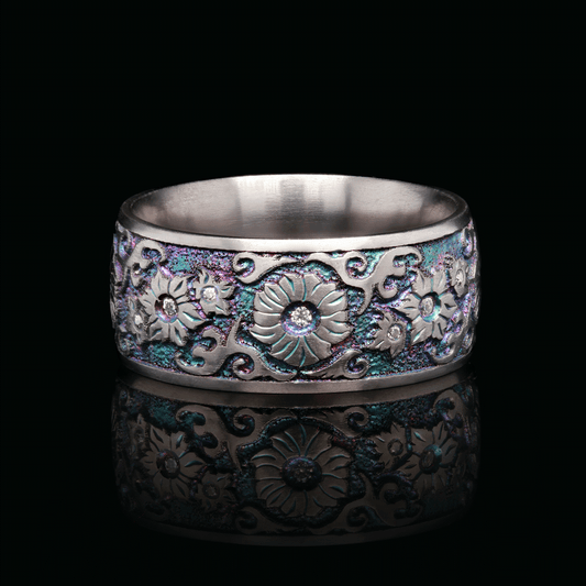 Floral Fantasy - Moissanite & Titanium Fine Etched Band