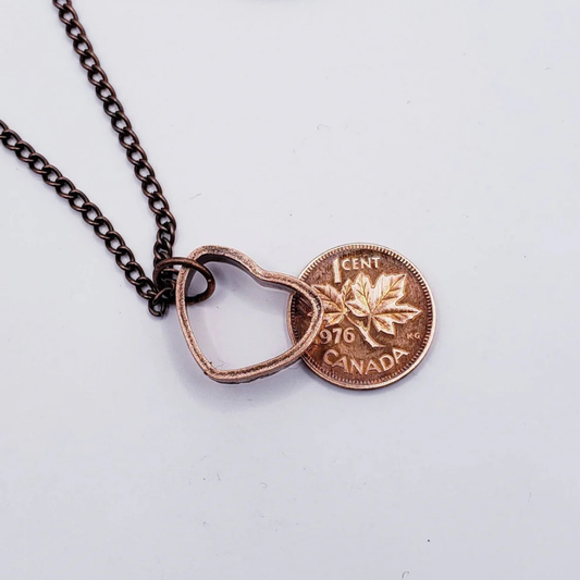 Canadian Penny In Resin Heart Necklace
