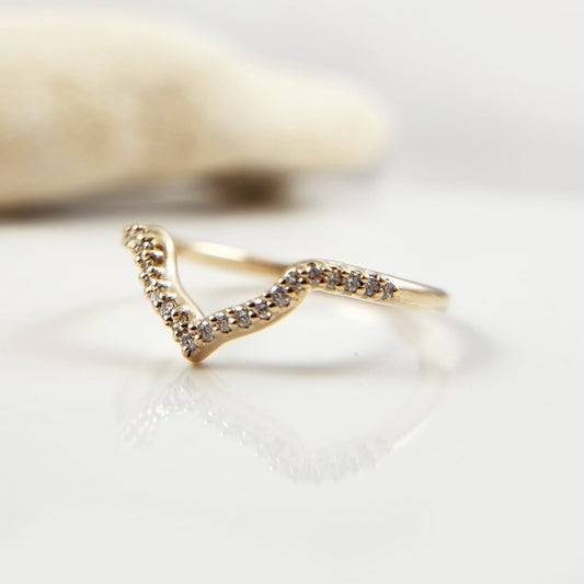 Sold, ask!Diamond 'V' Contour Gold Wedding Band