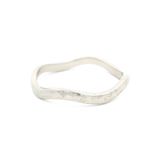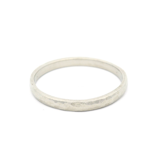 14k White Hammered Half-Eternity Band with 0.30cts Bead-Set Diamonds