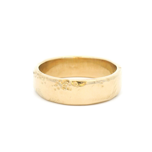 10k Yellow Textured Hammered 5.5mm Wide Wedding Band