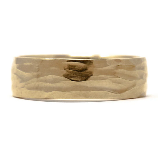 10k Yellow Hammered Finish 6mm Wide Wedding Band