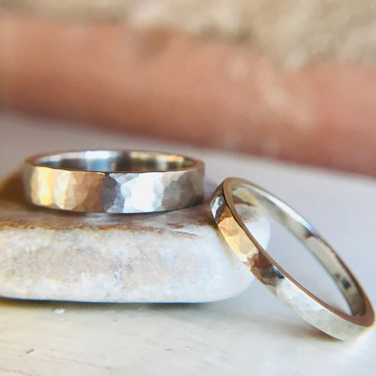14k White 8mm Wide Hammered Band with Black Rhodium Stripe
