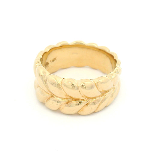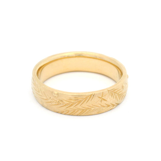 14K Yellow Gold Carved Sweetgrass 4mm Wide Band