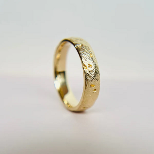 Strata Band II - 14k Yellow Hand Carved Textured Wedding Band