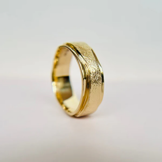 14k Yellow Gold Band Hand Carved with Matte Finish