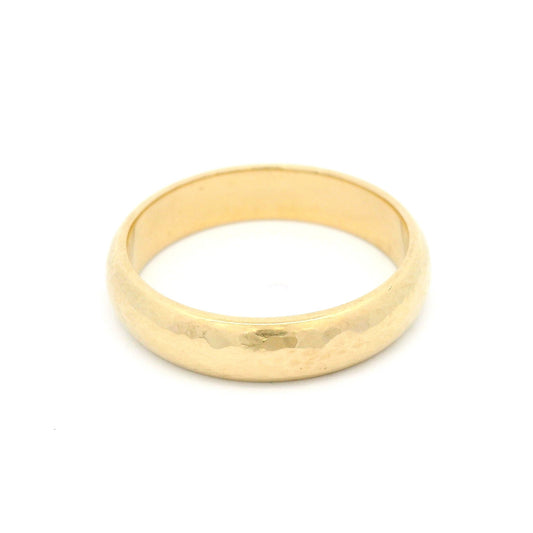 14K Yellow Gold 4mm Wide Hammered Domed Band