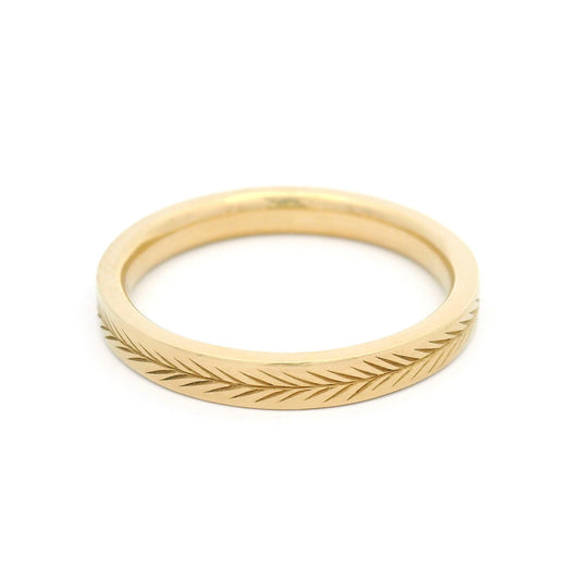 14K Yellow Gold 3mm Wide Flat Engraved Wheat Band