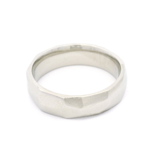 14k White 5.5mm Wide Soft-Dome Faceted Band