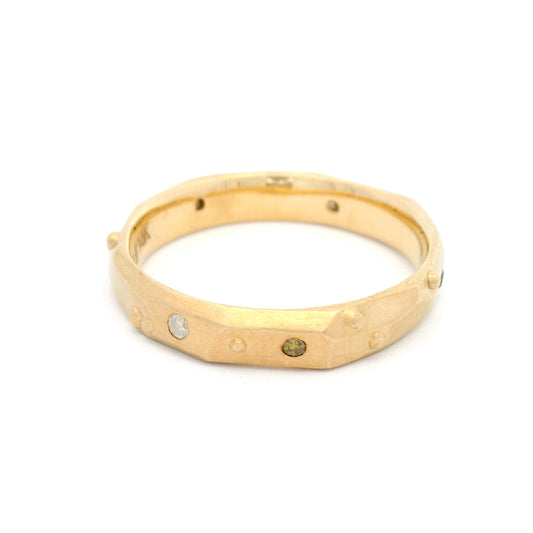 14k Yellow Gold Asymmetrical Band with 0.39cts Mixed Cut Diamonds
