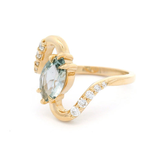 14k Yellow Engagement Ring with 1.17ct Hexagonal Green Sapphire & Accent Diamonds