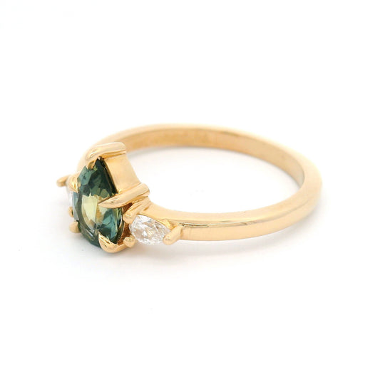 18k Yellow Engagement Ring with 1.27ct Green Sapphire & Accent Diamonds