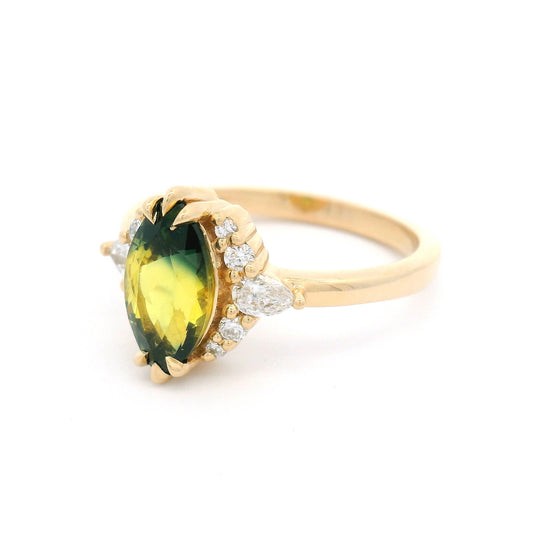 14k Yellow Engagement Ring with Natural 2.03ct Parti Sapphire and Accent Diamonds