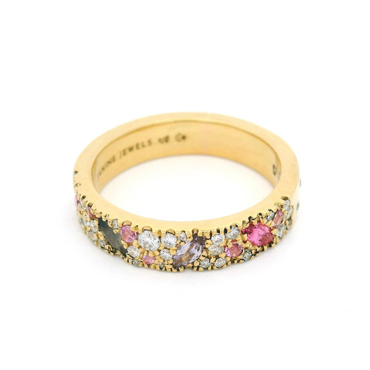 18k Yellow 4mm Wide Band with Pavé-Set with Natural Sapphires and Lab-Grown Diamonds