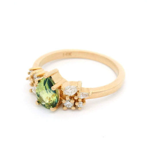 14k Yellow Solitaire Engagement Ring with 0.66ct Green Pear Shaped Sapphire
