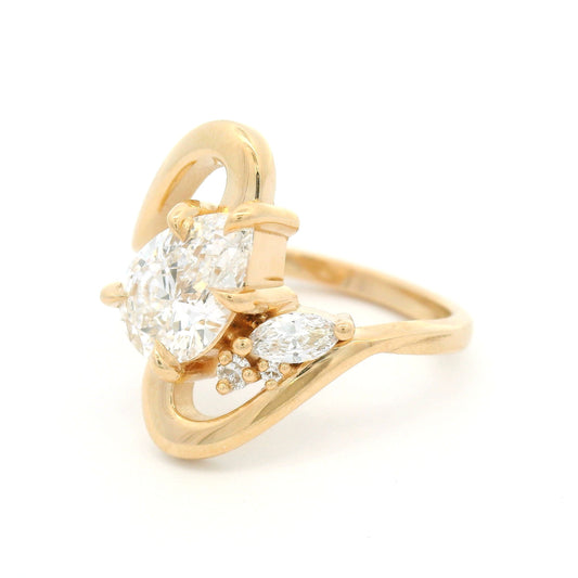 14k Yellow Engagement Ring with 0.53ct Canadian Fancy Cut Diamond and Accent Diamonds