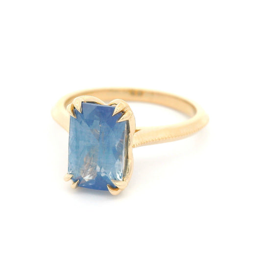 14k Yellow Solitaire with Natural 2.54ct Rectangular Violet-Blue Sapphire