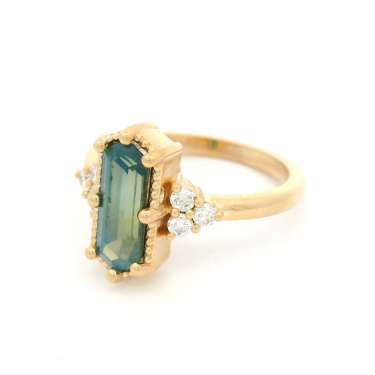 14k Yellow Engagement Ring with 1.17ct Hexagonal Green Sapphire & Accent Diamonds