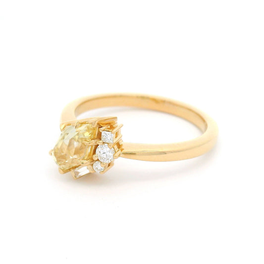 18k Yellow Hexagon Ring with 0.64ct Round Yellow Sapphire and Accent Diamonds