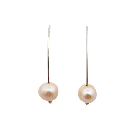 Silver Hoop Earrings with Pink Freshwater Pearls