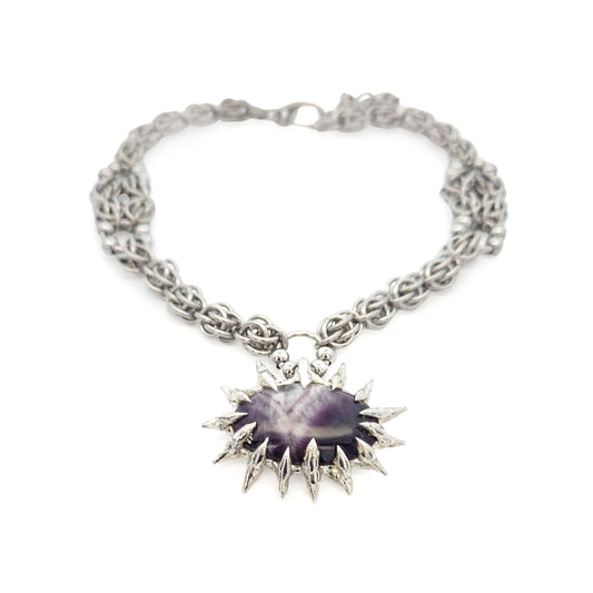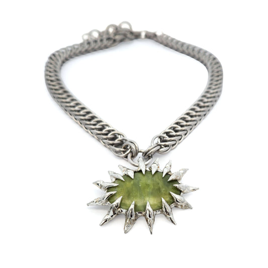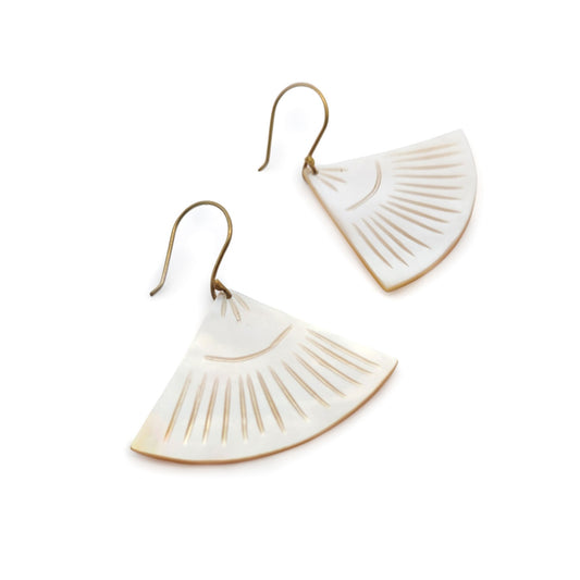 Half-Circle Mother of Pearl Carved Sunburst Necklace