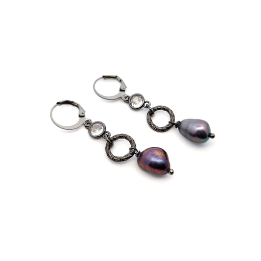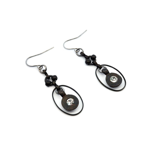 Rustic Oxidized Sterling Silver & CZ Earrings
