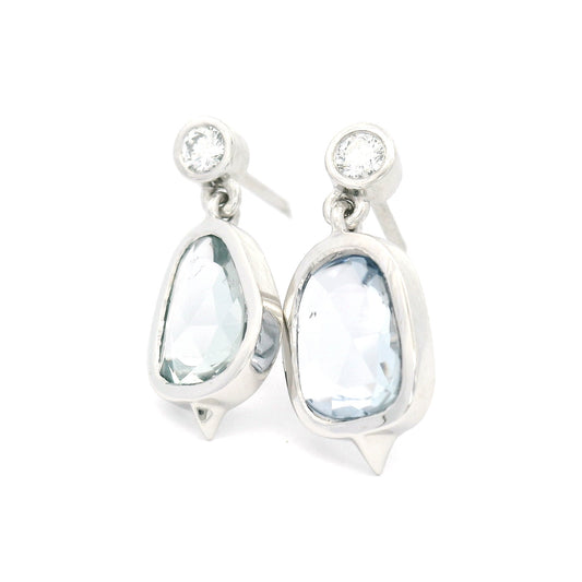 Platinum Earrings with 2.51cts Blue Sapphire Rose-Cuts and Accent Natural Diamonds
