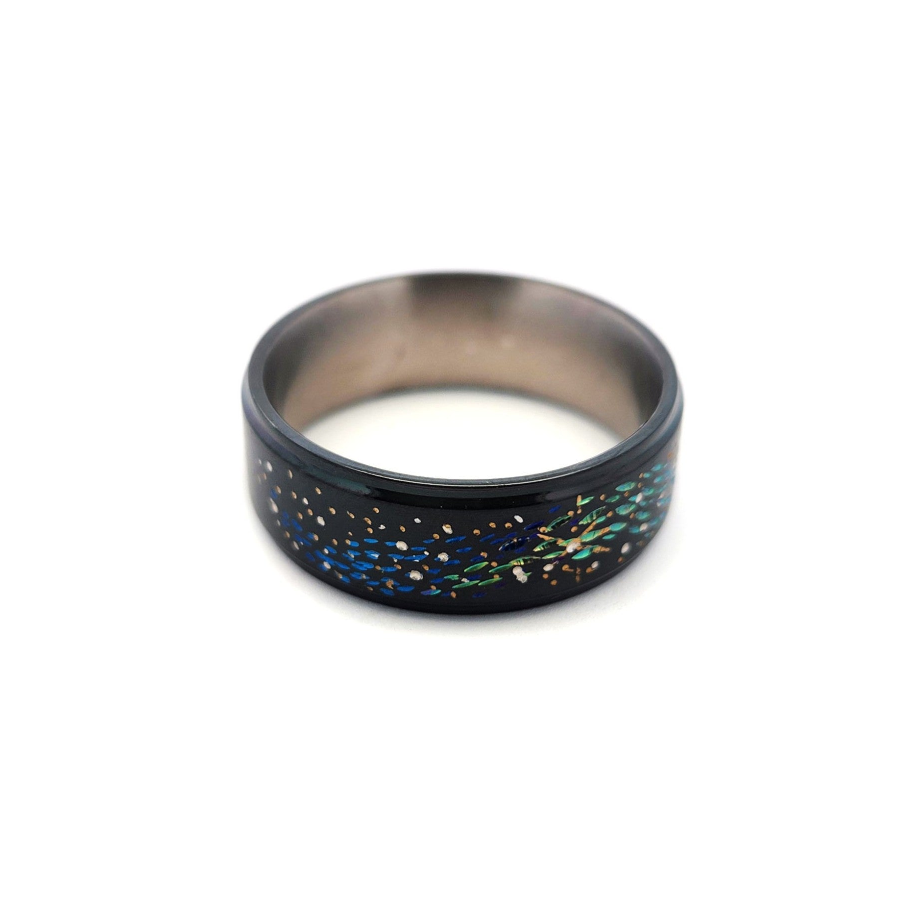 A sleek, cosmic-inspired ring crafted from matte black titanium, featuring subtle orbital textures that evoke the depth and mystery of outer space. Minimal, modern, and ultra-durable—perfect for stargazers, sci-fi lovers, and anyone drawn to celestial style.