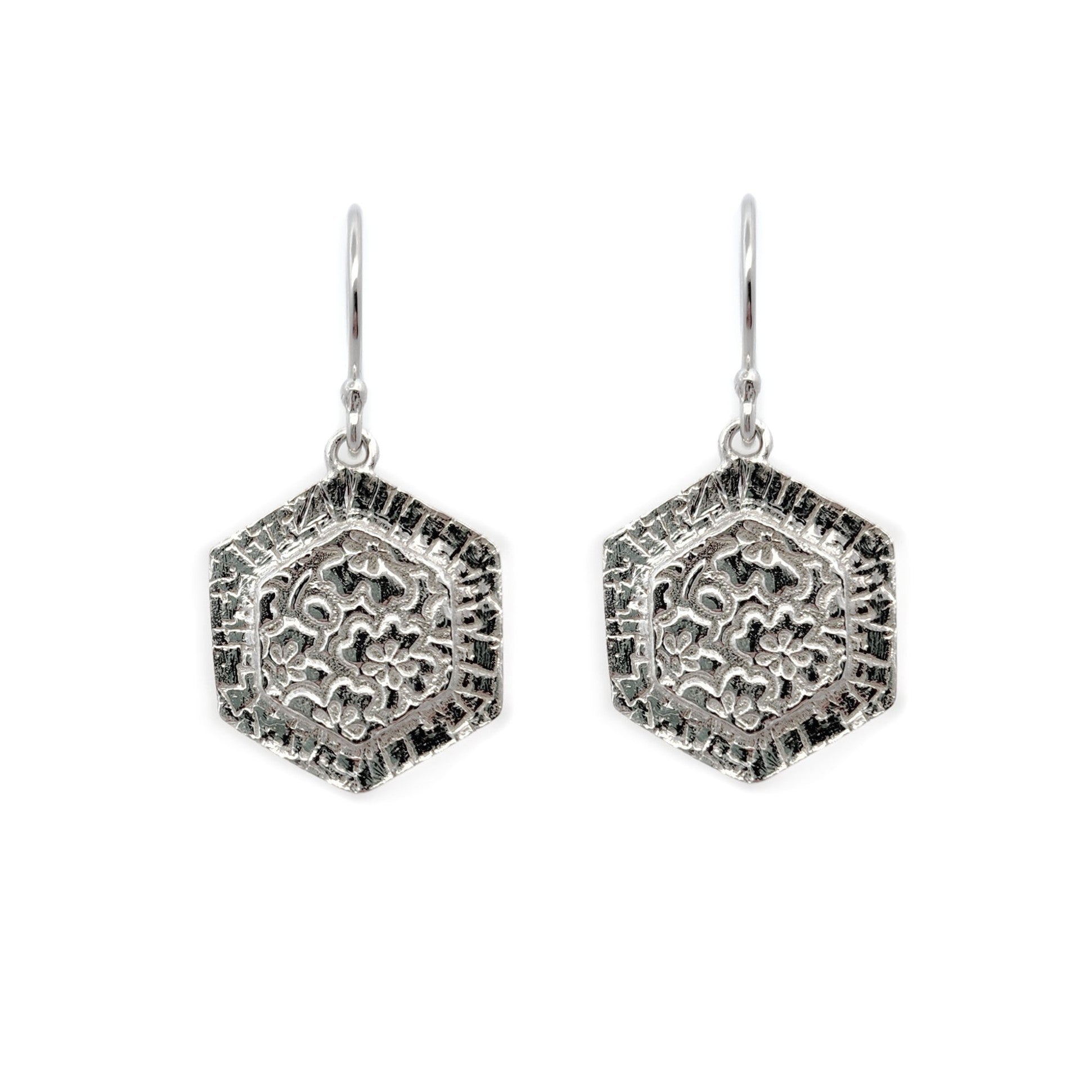 Bojagi Silver Hexagon Drop Earrings