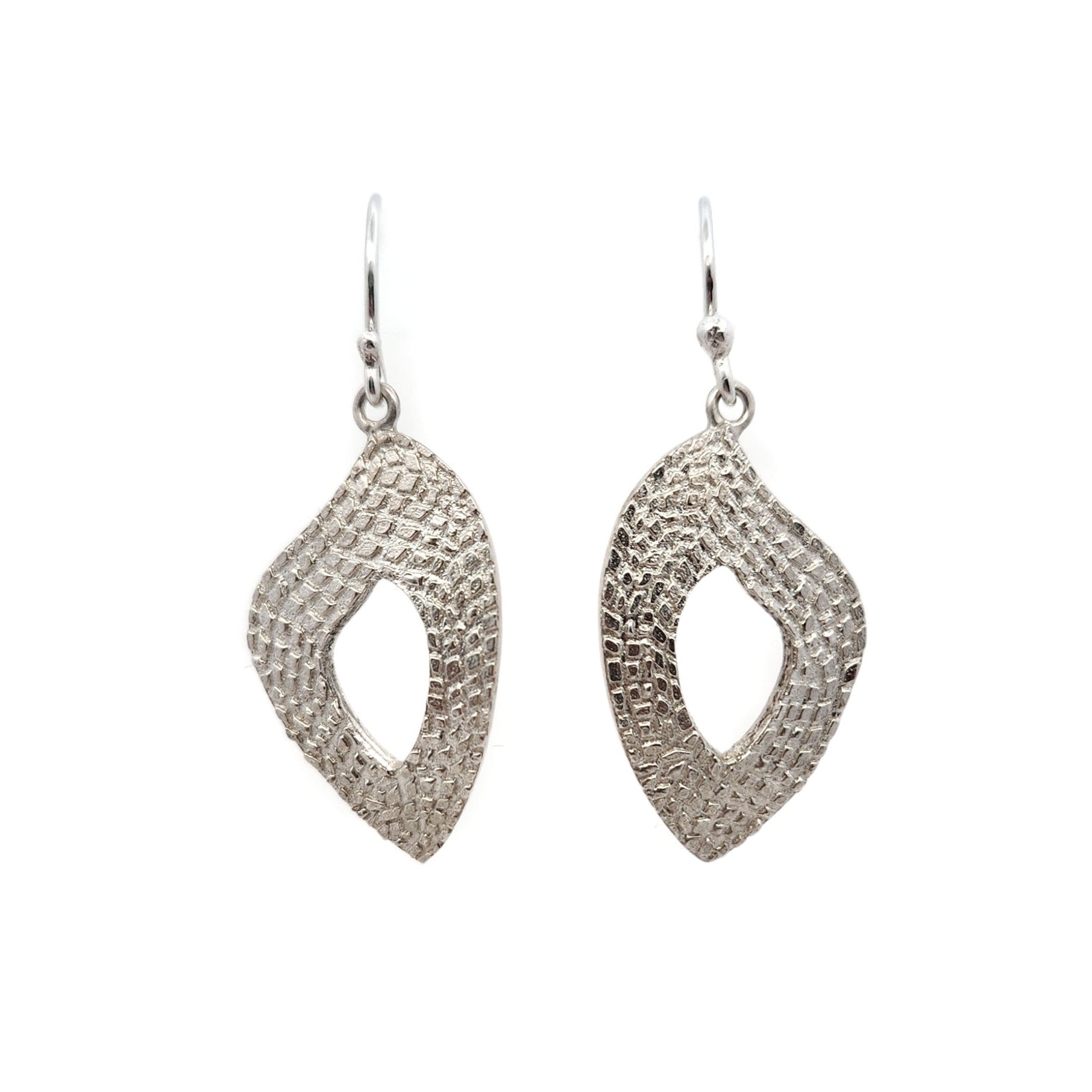 These drop earrings are inspired by Bojagi, the traditional Korean textile art of creating square wrapping cloths, often made from stitched-together fabric scraps in a patchwork style.