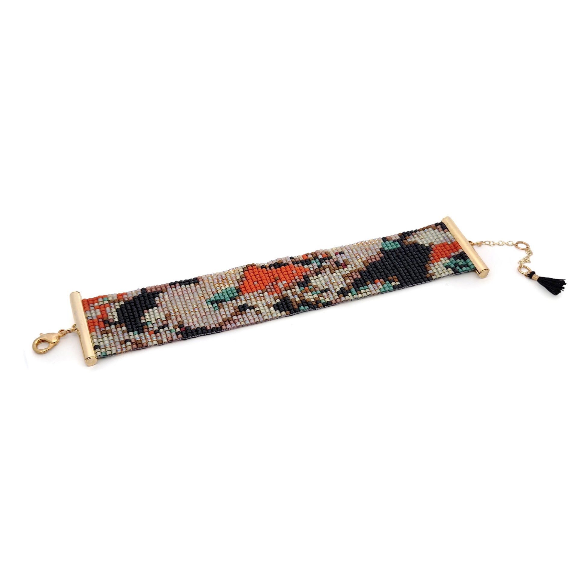 This bracelet translates the hidden architecture of the human brain into an abstract, bead‑woven landscape. Crafted with Delica 11/0 beads, it draws inspiration from expansion microscopy, where cellular structures bloom into vivid, enlarged patterns. The design evokes branching networks, shifting colours, and organic forms—an artistic impression of the microscopic world that shapes thought and memory. The result is a contemporary, science‑infused piece that turns biological complexity into wearable art.