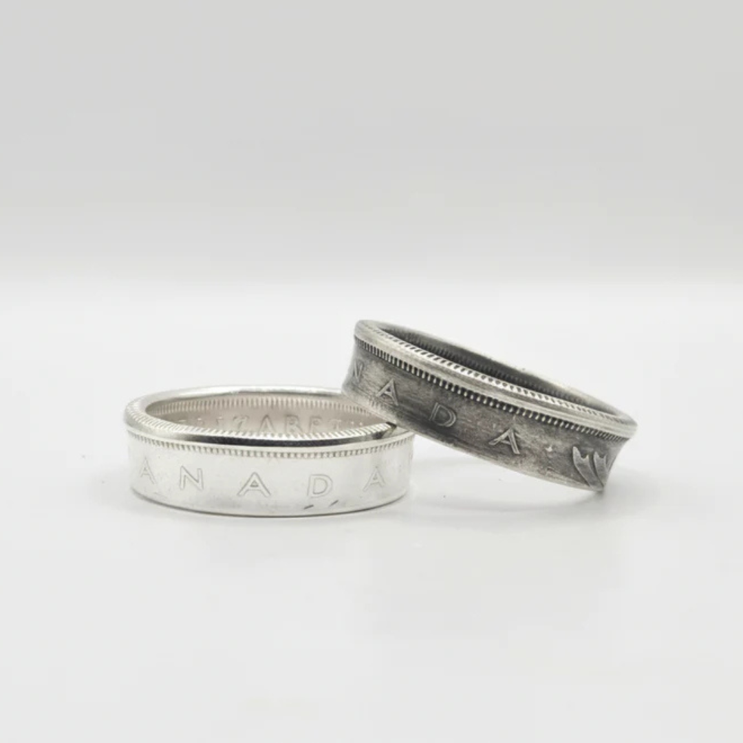 There’s something uniquely poetic about wearing history on your finger. These rings aren't just jewellery; they are reimagined artifacts salvaged from the silver age of Canadian currency. Each piece is meticulously handcrafted from authentic 80% silver quarters minted between 1940 and 1966.