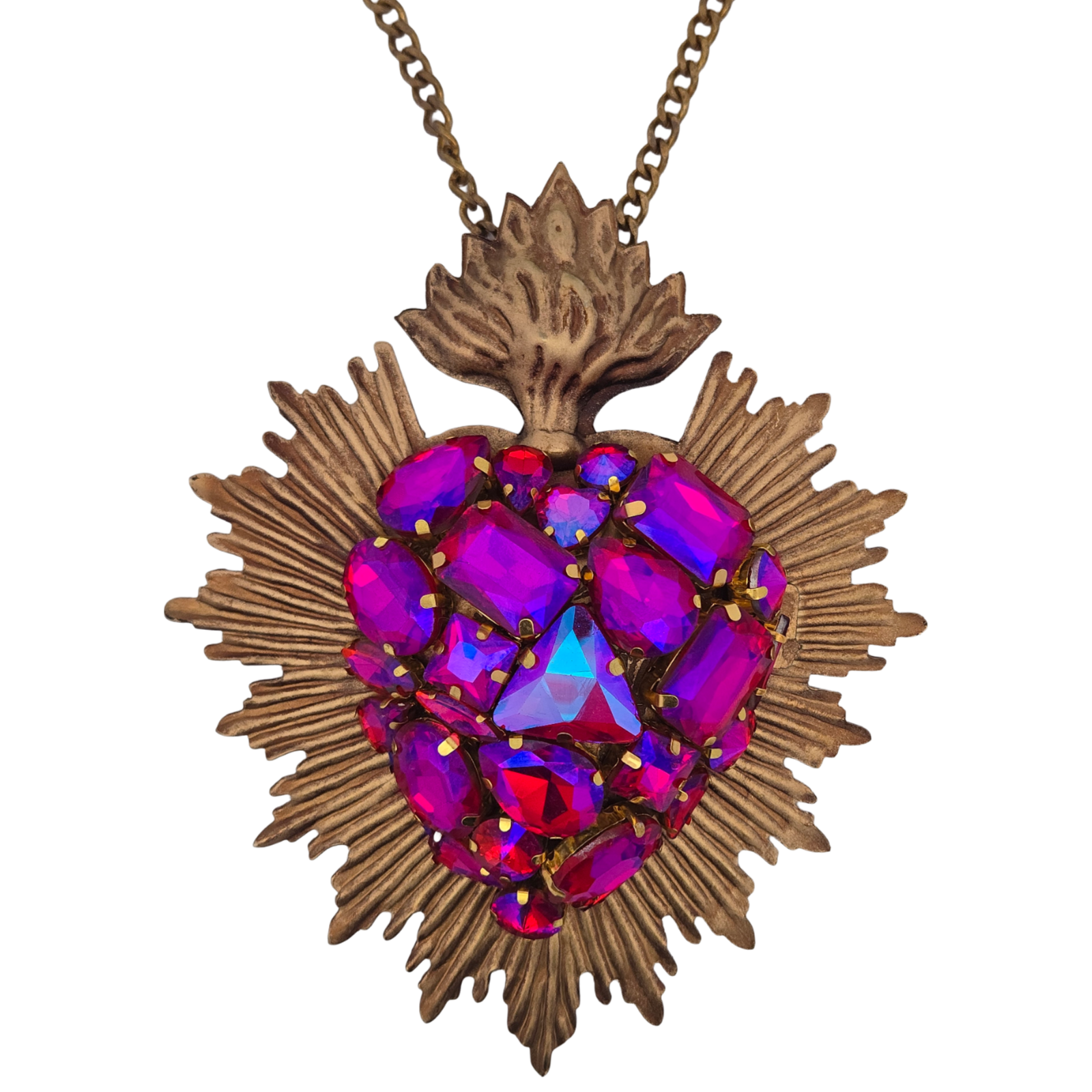 This collection of necklaces features large audacious gem-encrusted hearts.