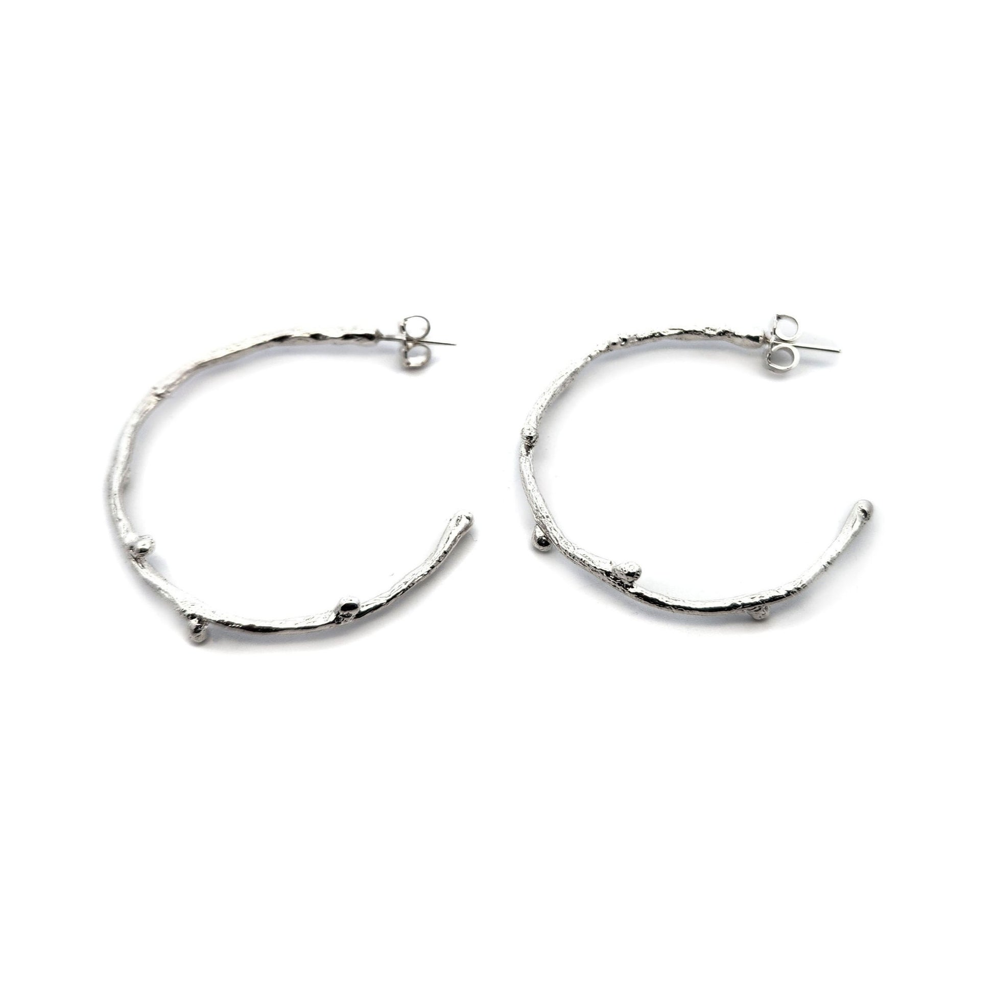 These sterling silver hoops are designed to mimic the natural curve of a tree branch, giving them an organic, sculptural feel. Measuring 2 inches in diameter, they’re lightweight, elegant, and perfect for everyday wear or adding a nature-inspired touch to any look.
