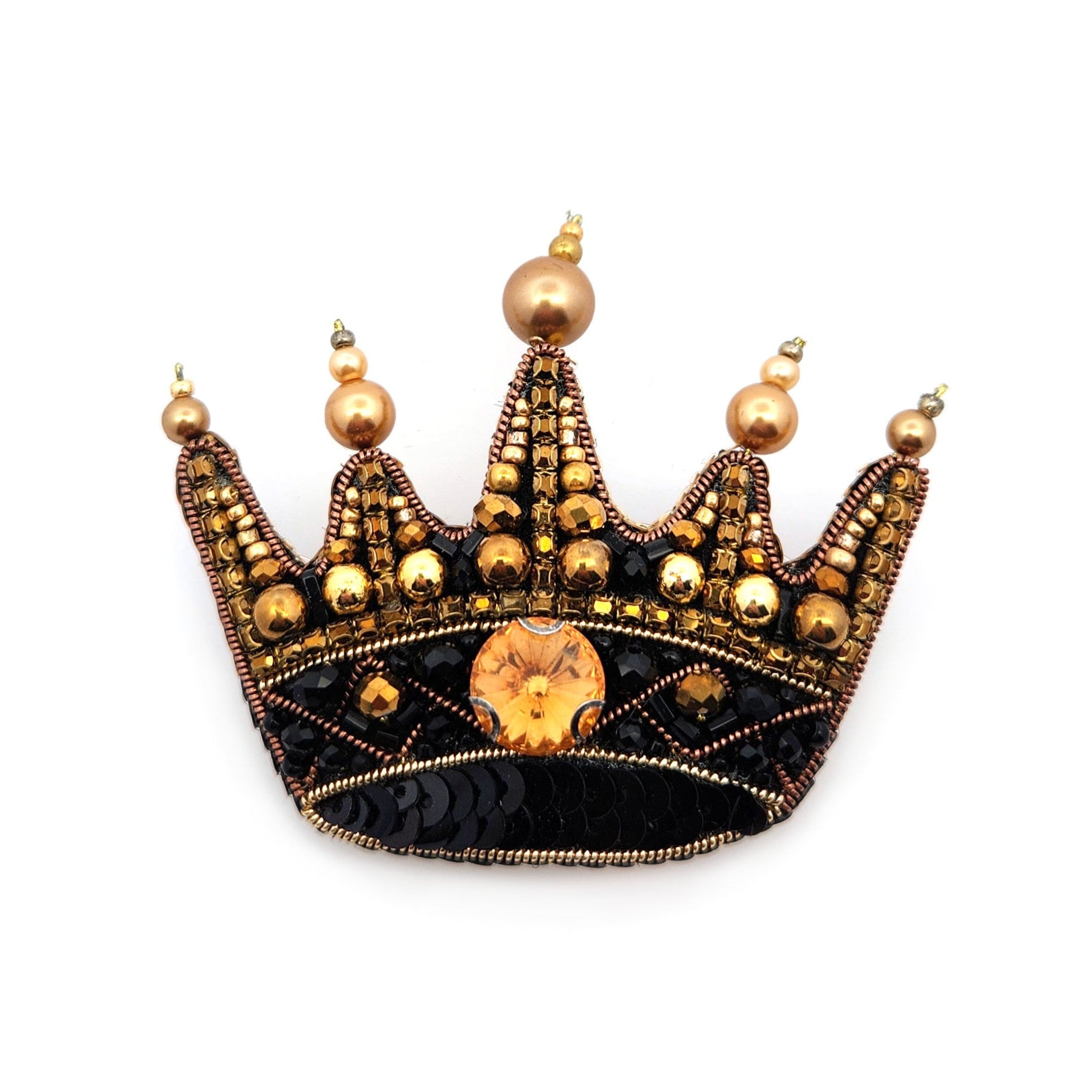 This regal brooch features a fun crown design accented in gold tones. Elegant and eye-catching, it adds a playful touch to any outfit. Perfect for collectors, statement-makers, or anyone who loves a hint of vintage charm.