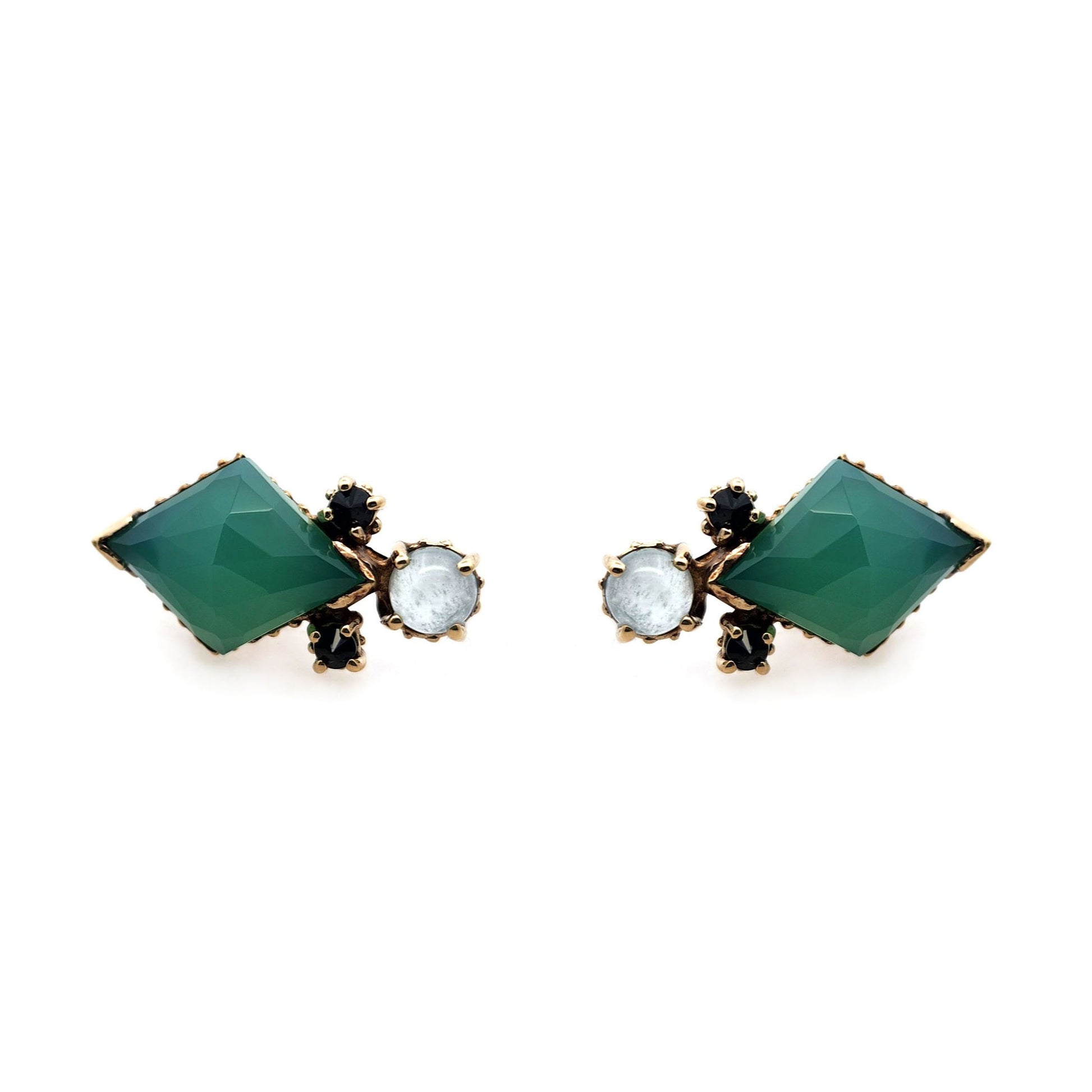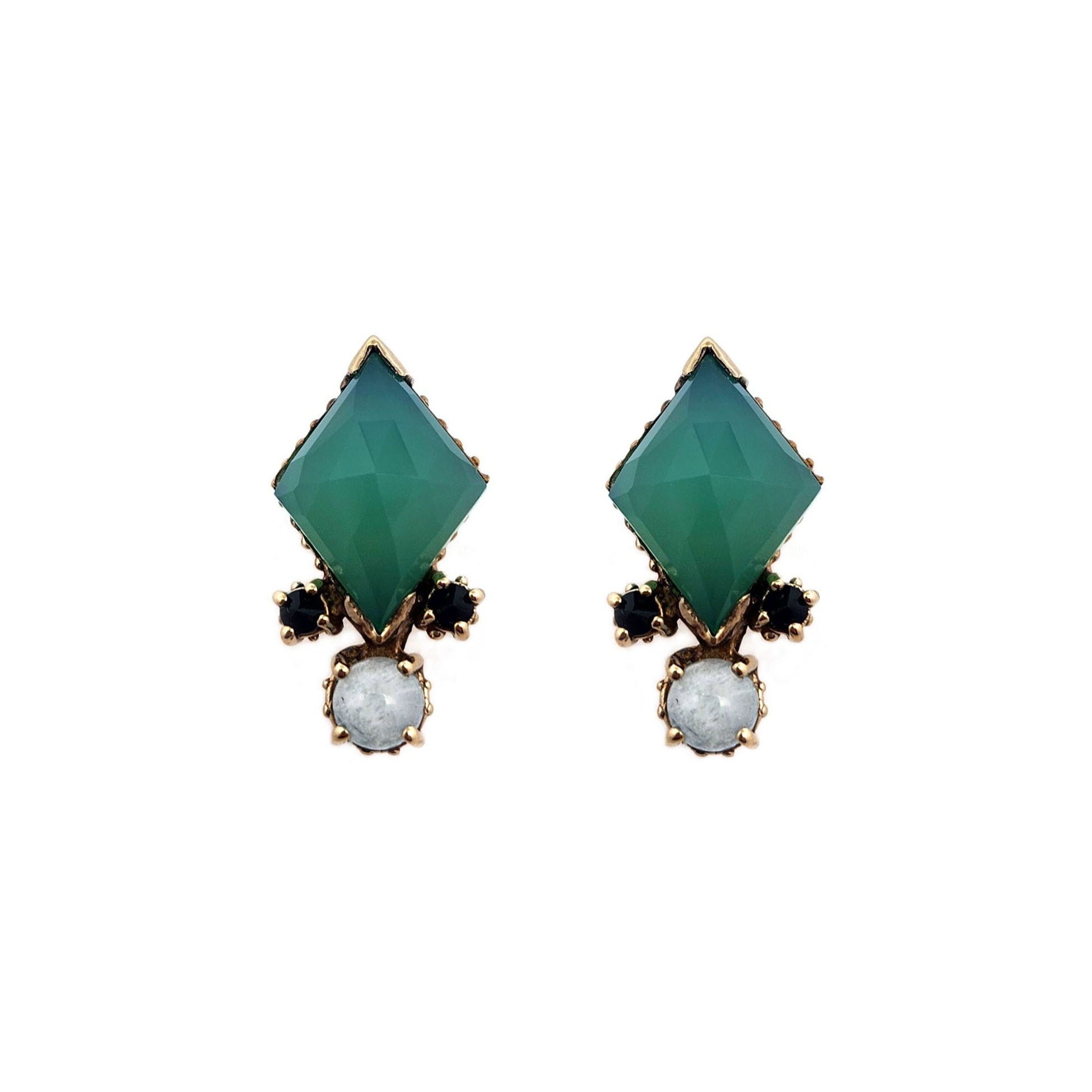 These handcrafted earrings are made from brass and feature a vibrant mix of gemstones, thoughtfully arranged to create a colorful, dynamic design. Each pair is handmade, making every piece slightly unique. Perfect for adding a playful pop of color and artisanal charm to any outfit.