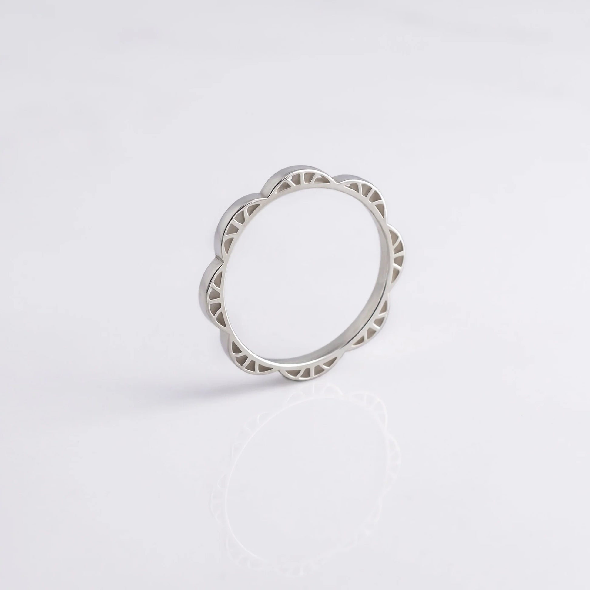 The top view of this delicate ring features a sense of simplicity that is perfect for everyday wear. The alluring side designs create a stunning and unique look that adds elegance. The ring is handmade in a selection of premium precious metals.