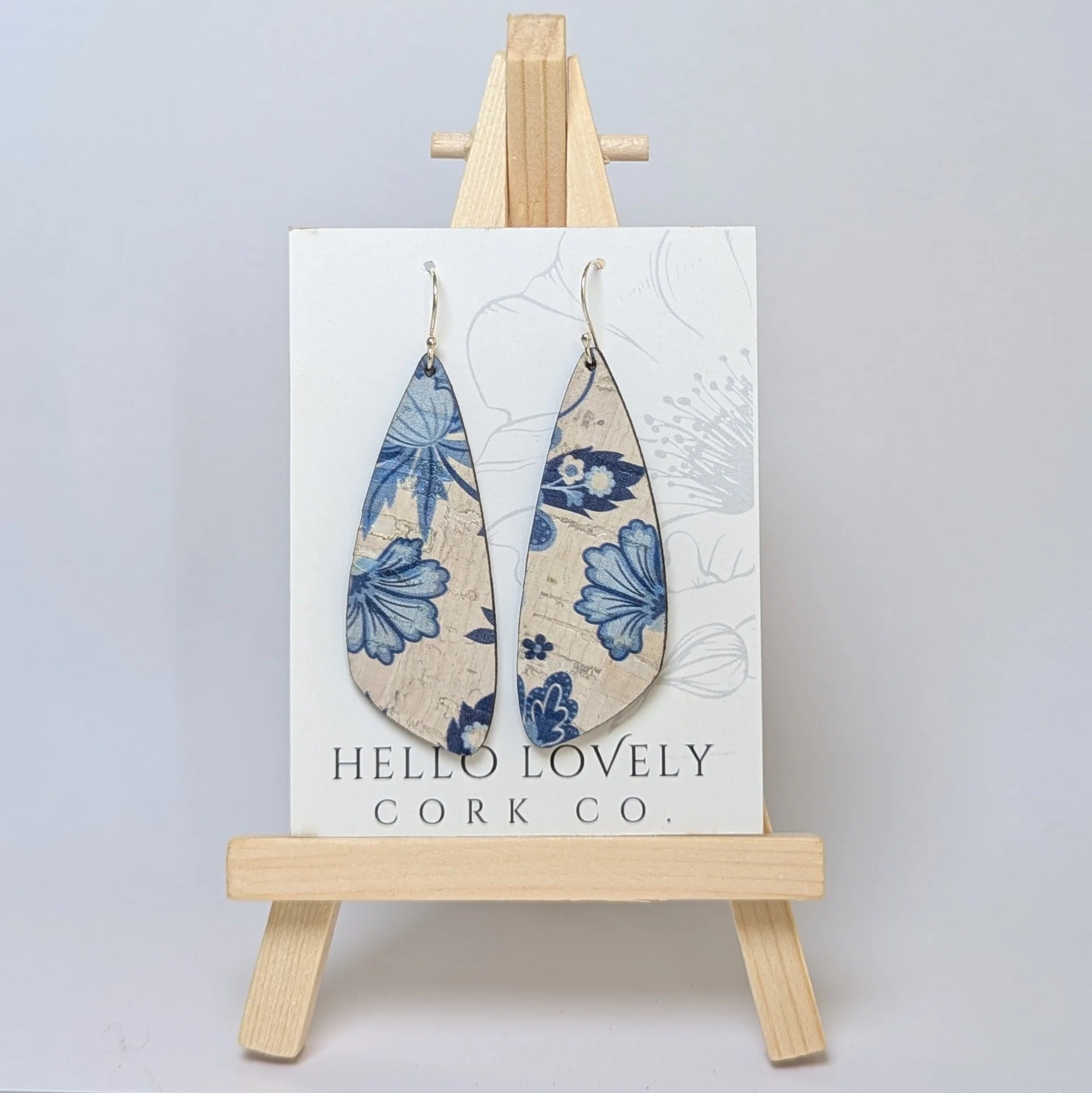 Medium Blue and White Floral Cork Earrings - Wing