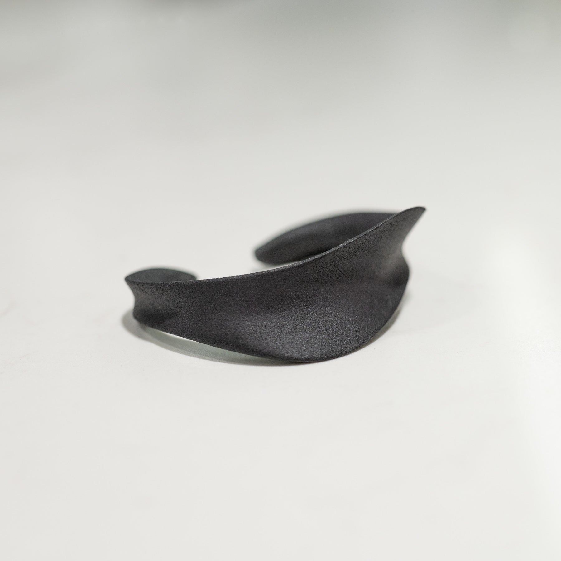 Crafted through Selective Laser Sintering (SLS) nylon, Neve balances thinness and strength in a way traditional methods cannot. Lightweight yet durable, the material ensures comfort while maintaining integrity. The innovative process reuses unfused powder, reducing waste while achieving bold, precise geometries.