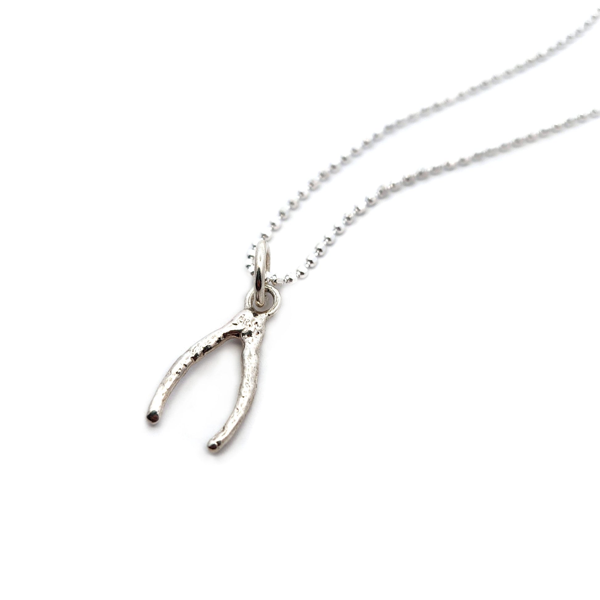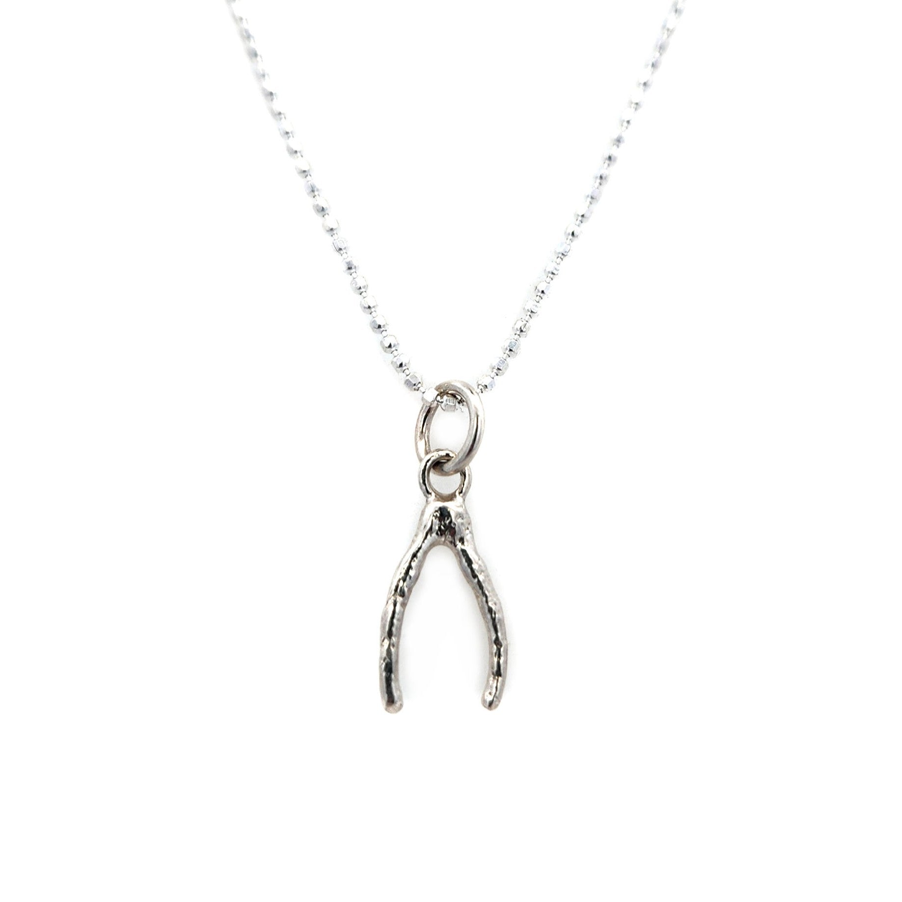 This charming sterling silver pendant features a wishbone. Suspended from a silver ball chain, it’s a versatile piece that pairs effortlessly with both casual and elevated looks.