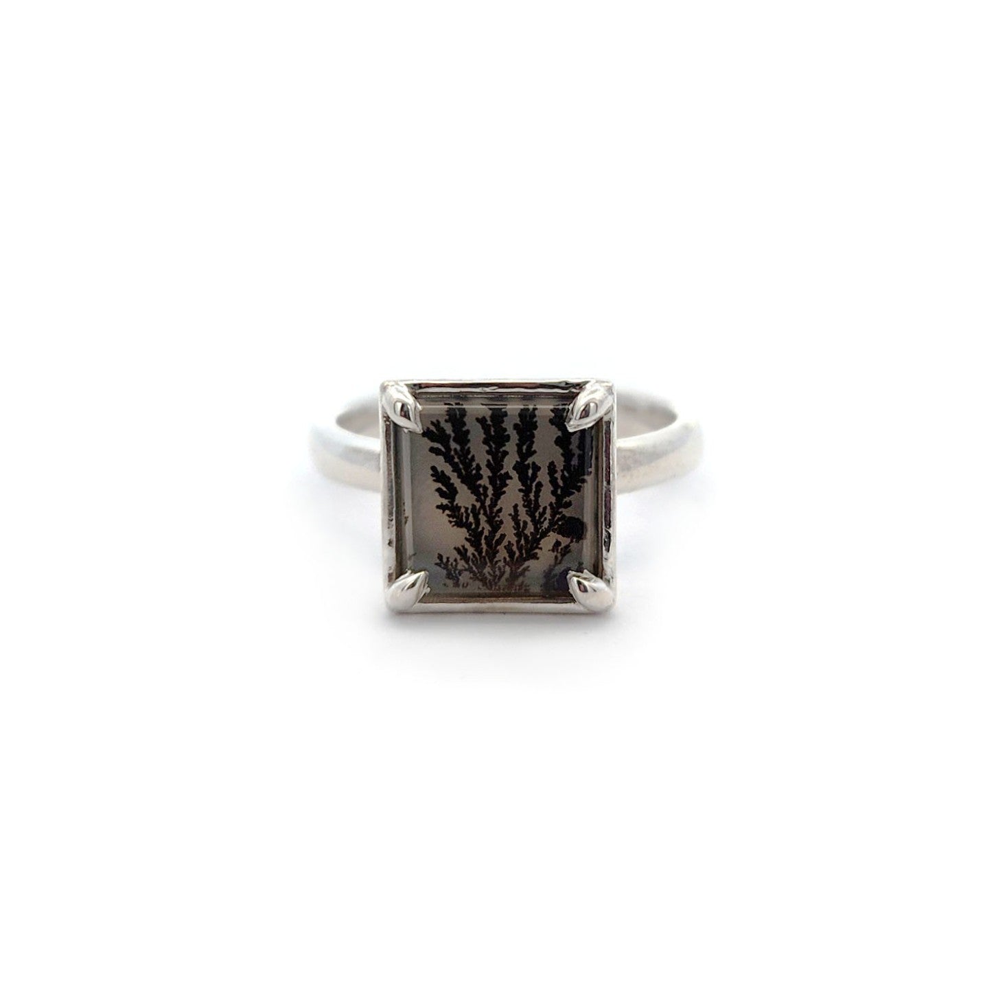 Let the natural beauty of this dendritic agate accompany you through every moment, making this ring a cherished addition to your collection of unique and timeless accessories. It is a must-have piece to elevate your daily style, effortlessly blending simplicity into every detail.