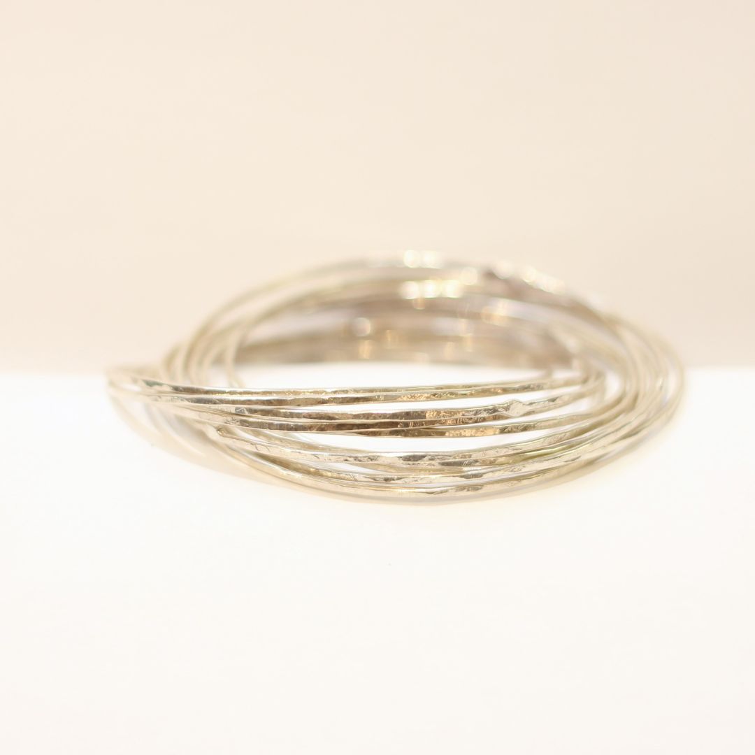 From everyday casual style to fancy special events, this beautiful bangle is ready for it all. Featuring numerous sterling silver bangles in one unified stack.