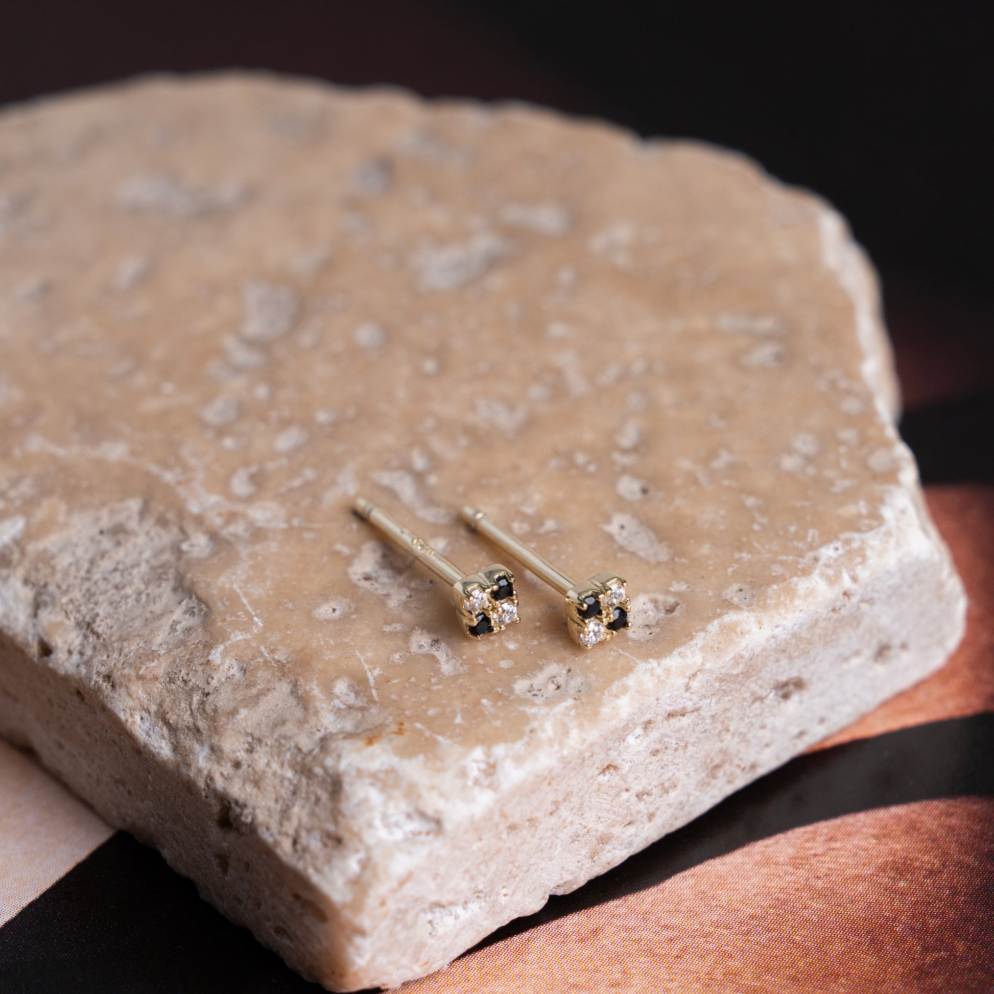 These delicate floral studs feature sparkling black and white cubic zirconia set in rich gold vermeil, creating a chic statement of elegance and edge.