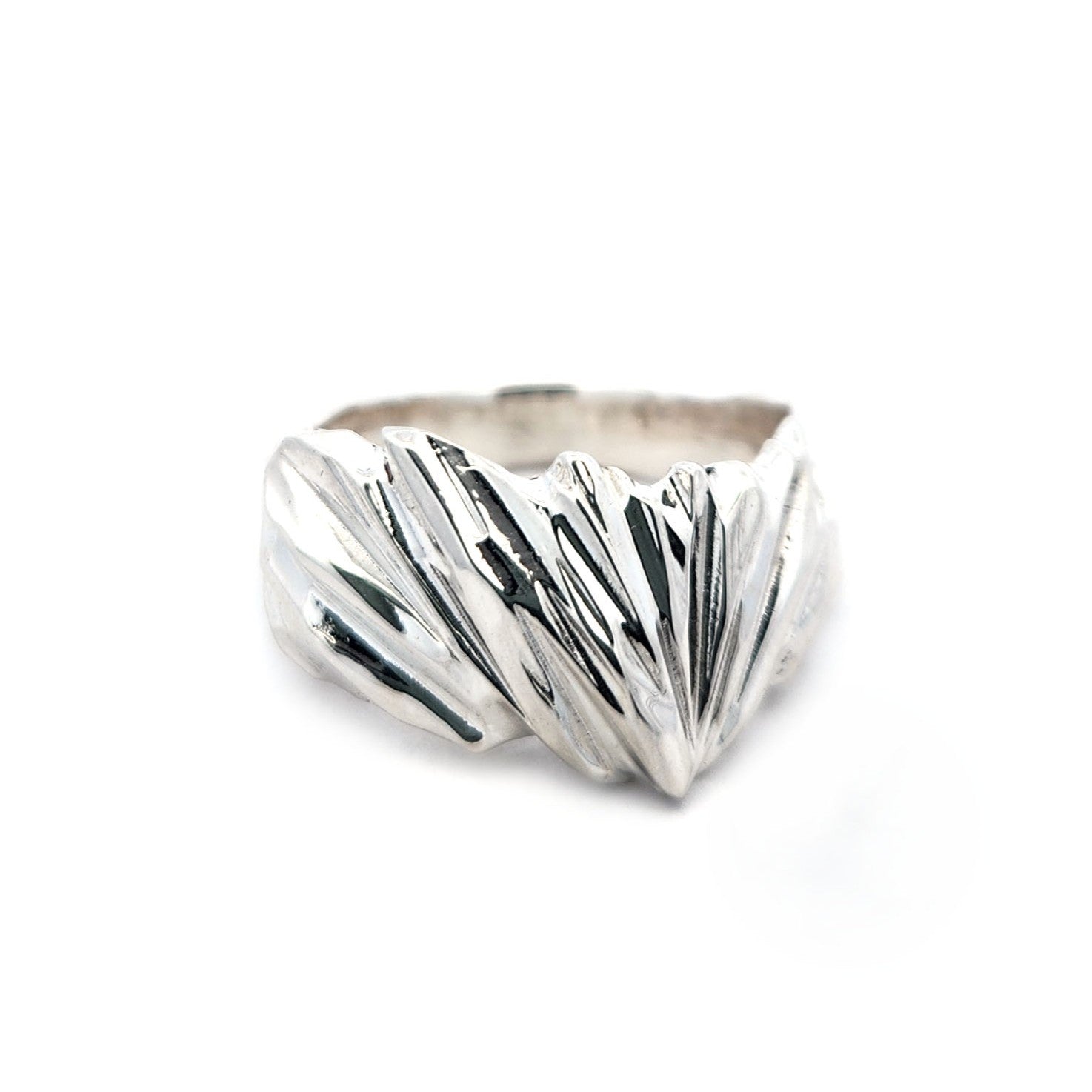 A handcrafted sterling silver ring featuring a sculpted mountain silhouette, capturing the rugged beauty of natural landscapes. With its organic contours and artisanal finish, this piece is perfect for nature lovers, adventurers, and anyone who carries the mountains with them.